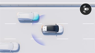 Le véhicule corrige automatiquement la trajectoire si une collision est probable lors d’un changement de voie ou vous en avertit d'une collision potentielle avec un véhicule qui dépasse dans la voie adjacente du véhicule lors des manœuvres de changement de voie.