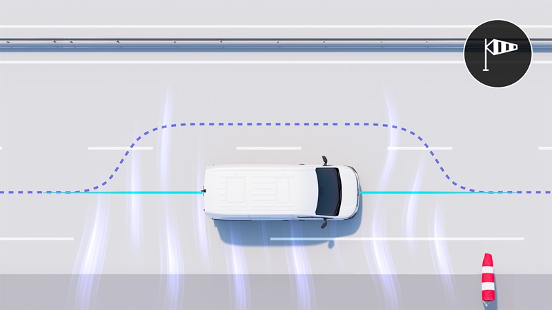 Le système vous aide à maintenir votre trajectoire au-dessus de 70 km/h lorsqu’un véhicule vous double ou en cas de bourrasques de vent latéral.